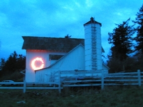 In the past, the barn owners have put up a wreath on the barn that fills the early dark evenings with warm light–a beacon for winter-weary sea goers!